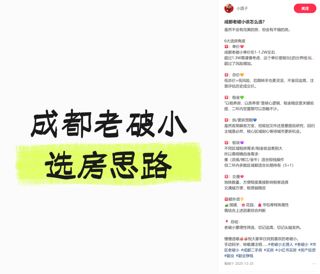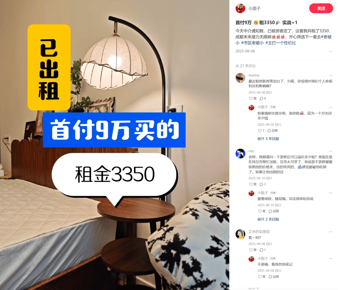一整个月,我把成都板块都捋了一遍,去线下踩楼盘,了解租客群体与市场价,综合考虑收益和风险点,最后得出的结论是:只要锁定成都二环内的房子,租售比达到5%以上,这事就能干。