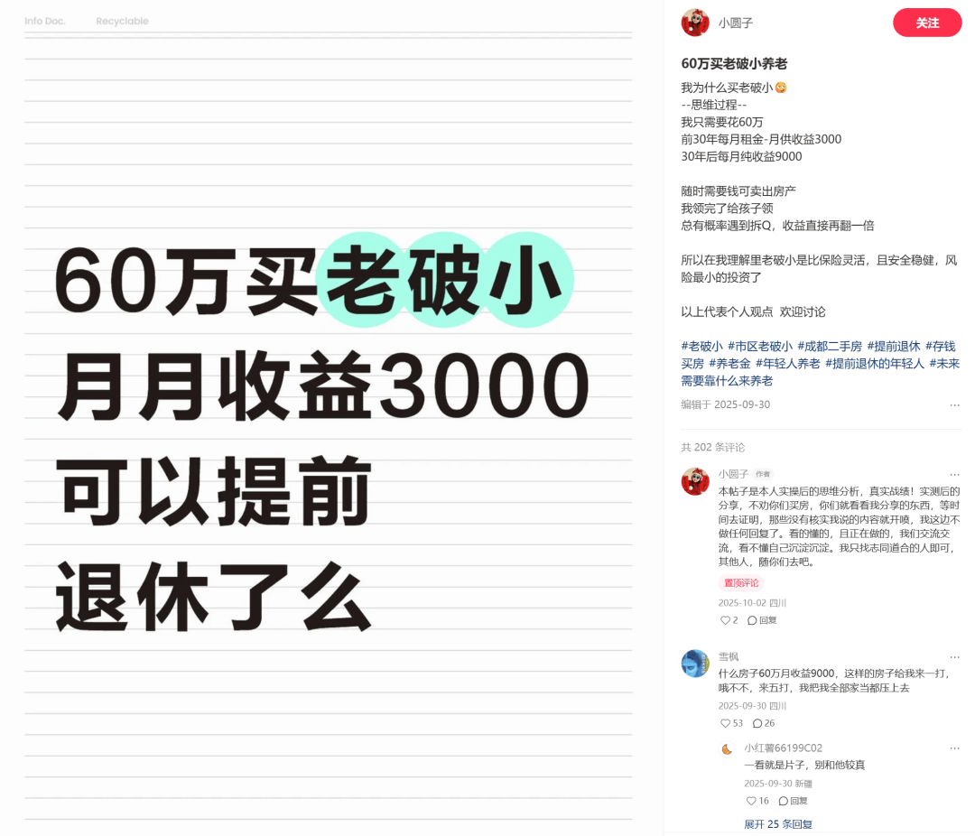 我确实是在一个我认为比较小众的赛道里做这件事。说不好听点,这叫赌,说好听点,这叫我很相信,无论是中国,还是成都的未来。我是坚定不移地认为未来会越来越好的。其实我已经不算动手早的,我后来做老破小的交流群,才发现很多人早在