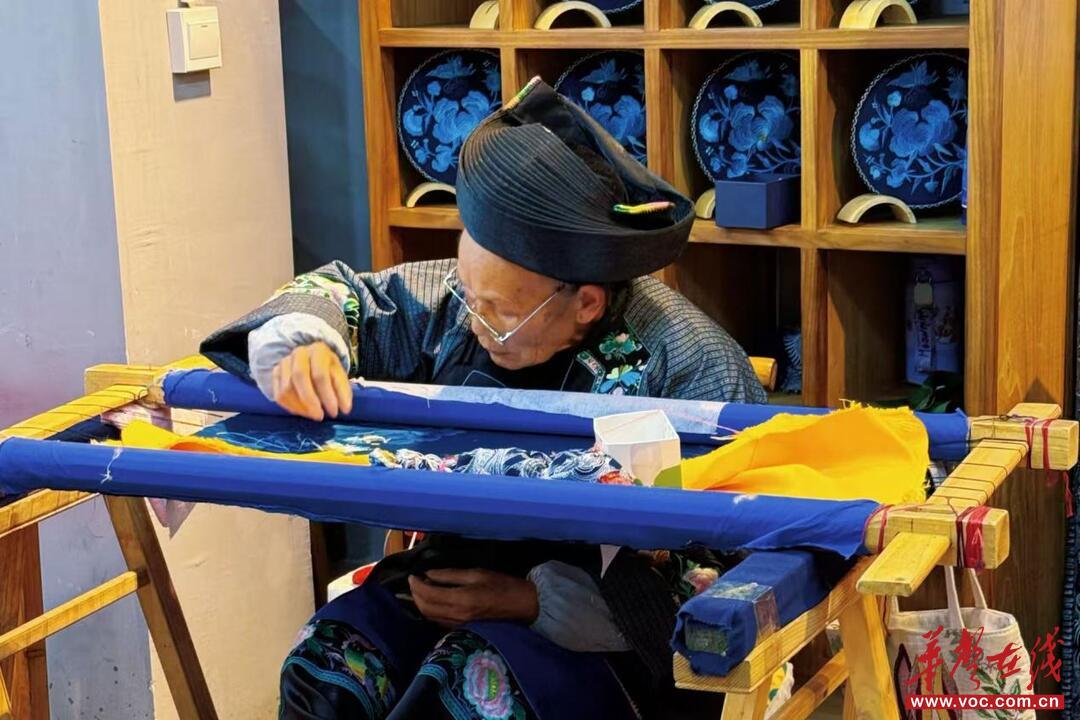 吴满金走的是“苗绣路”。从梨子寨到东连台山村,绣坊搬了家,订单却没断。故宫、美术馆、博物馆,苗绣沿着这条路走出了大山。