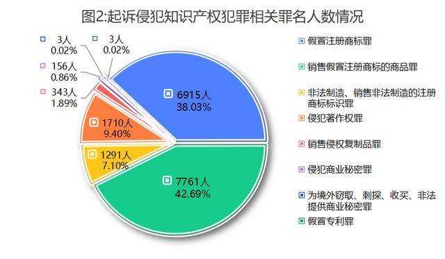 1.依法打击各类侵犯知识产权犯罪。批准逮捕涉嫌假冒注册商标罪1461件2273人,起诉3255件6915人;批准逮捕涉嫌销售假冒注册商标的商品罪1439件2079人,起诉3743件7761人;批准逮捕涉嫌非法制造、销售非法制造的注册商标标识罪197件259人,起诉519件1291人;批准逮捕涉嫌侵犯著作权罪246件368人,起诉894件1710人;批准逮捕涉嫌销售侵权复制品罪70件90人,起诉162件343人;批准逮捕涉嫌侵犯商业秘密罪40件89人,起诉71件156人;起诉涉嫌为境外窃取、刺探、收买、非法提供商业秘密罪2件3人;批准逮捕涉嫌假冒专利罪2件2人,起诉1件3人。
