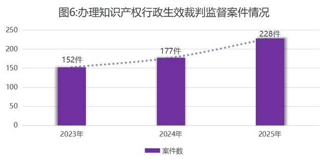 1.加强行政生效裁判监督。办理知识产权行政生效裁判监督案件228件,同比上升28.8%。其中商标类案件181件,专利类案件31件,垄断类案件12件,其他涉知识产权案件4件。
