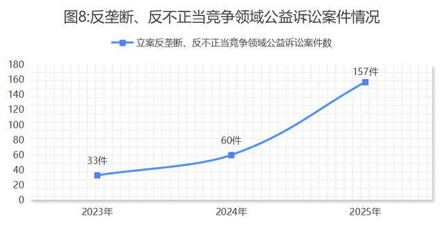 3.强化反垄断和反不正当竞争监督。立案反垄断、反不正当竞争领域公益诉讼案件157件,同比上升1.6倍,其中反垄断领域31件,反不正当竞争领域126件。