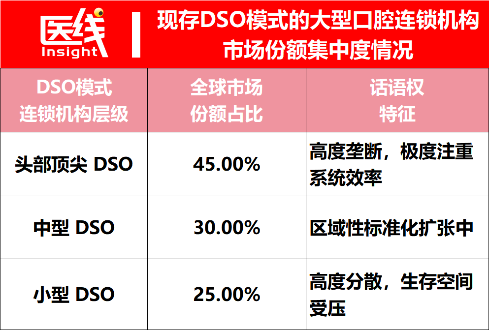 如果说技术的更迭与成本的压缩是对上游厂商的洗牌,那么客户结构的剧变,则是对整个口腔医疗服务生态商业模式的颠覆。在士卓曼的财报中,其明确披露:目前,全球约有20%的种植牙是由 DSO(Dental Service Organizations,牙科服务组织/大型连锁机构)的下属医生完成的。而预计到2029年,在主要市场,这一比例将飙升至惊人的30%。